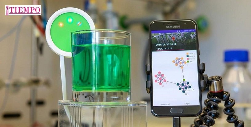 Todos los datos recogidos se trasladan a través de una aplicación móvil a la nube, donde un algoritmo de aprendizaje automático compara esta huella digital con una base de datos con información sobre líquidos conocidos.