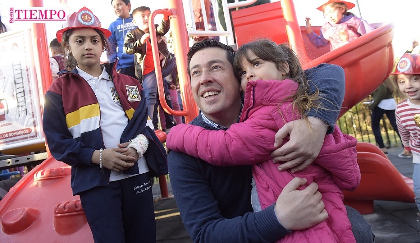 Los homenajeados asistieron vistiendo su ropa de trabajo, la sirena del camión sonó al momento en el que se abrieron las puertas para que los niños puedan ingresar a los juegos, principalmente al camión de bomberos que se encuentra en el centro del renovado espacio público.
