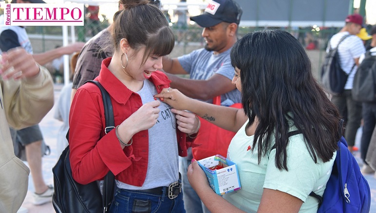 Repartieron lazos rojos, símbolo para mostrar apoyo a la lucha contra el sida y solidarizarse con las víctimas de la enfermedad y los portadores del VIH. También entregaron preservativos y folletería de prevención. Además de asesorar a las personas brevemente.