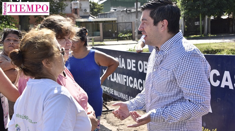 |El Intendente de Malvinas Argentinas, Leo Nardini, visitó la Plaza “Domingo Miguel Azar” (ex Maure), lugar en el cual el Municipio trabaja en tres nuevas cuadras de pavimentación y obra hidráulica que rodean ese espacio público del distrito.