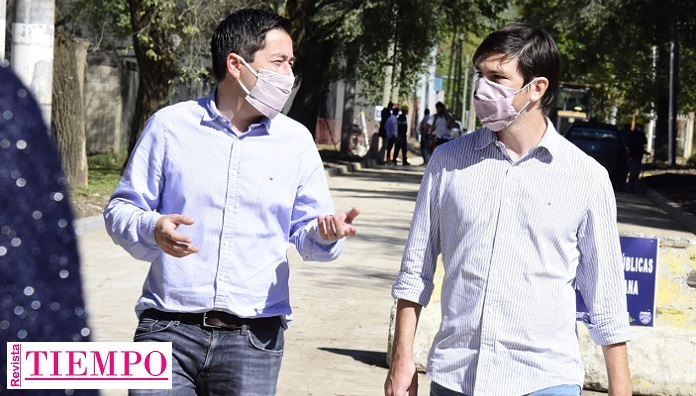 El intendente de Malvinas Argentinas, Leo Nardini, visitó la obra que se realiza en la calle Fragata Heroína junto al secretario general de Gobierno de la Provincia de Buenos Aires, Federico Thea.
