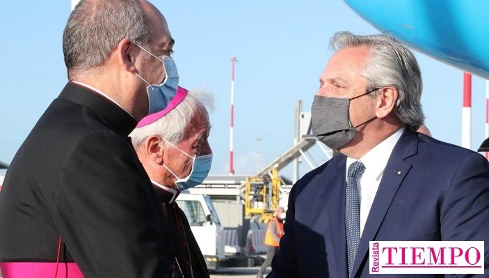 El vuelo AR 1090 de Aerolíneas Argentinas aterrizó a las 18.29 hora local (13.29 de la Argentina) en el aeropuerto Internacional Leonardo da Vinci proveniente del aeropuerto Charles de Gaulle de la capital francesa. El Presidente Alberto Fernández fue recibido por la embajadora ante la Santa Sede, Fernanda Silva; por el embajador en Italia, Roberto Carlés; y por Monseñor Guillermo Karcher (foto de portada) que es argentino y desempeña funciones claves en la Santa Sede.