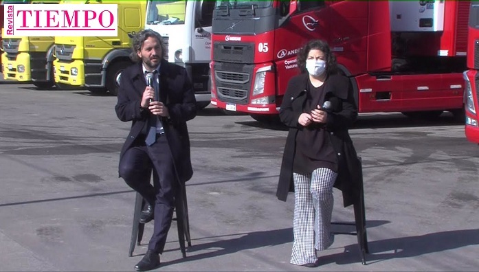 Al aire libre y con los camiones que reparten las vacunas en las 24 jurisdicciones de fondo, Cafiero y Vizzotti brindaron una conferencia de prensa en la que precisaron que “arranca hoy el proceso de distribución de las vacunas hechas en Argentina”.
