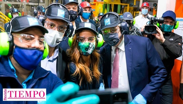 La candidata del FDT acompañó este martes al presidente Alberto Fernández en su recorrida a la fábrica de envases Ball, en el parque industrial de Burzaco, una actividad en la que el mandatario anunciará también la puesta en marcha de 25 obras públicas en 15 provincias.