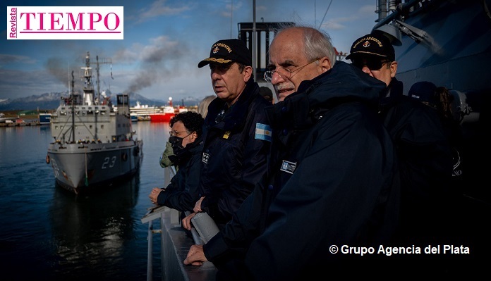 Pasado el mediodía, Taiana embarcó en el aviso “Estrecho de San Carlos”, en el que compartió un almuerzo junto a otros funcionarios del Ministerio de Defensa y jefes de las Fuerzas Armadas y navegó las aguas del canal de Beagle.