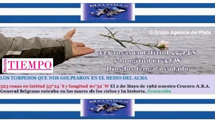 | 323 rosas en latitud 55°24´S y longitud 61°32´W | El 2 de Mayo de 1982 nuestro Crucero A.R.A. General Belgrano, inicialmente bautizado A.R.A. 17 de Octubre (1951 – 1955), entraba en los mares de los cielos y la historia. Evocación