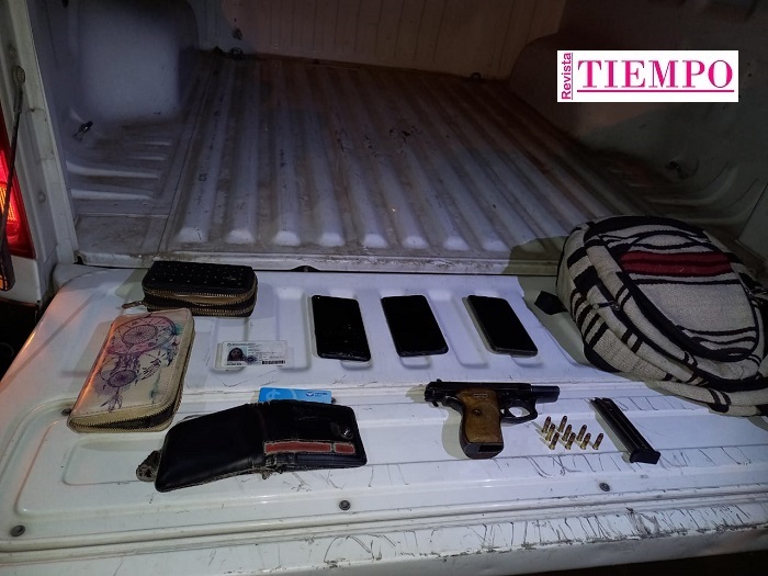 En el interior del vehículo se hallaron una pistola semi-automática calibre 22 con 9 municiones.