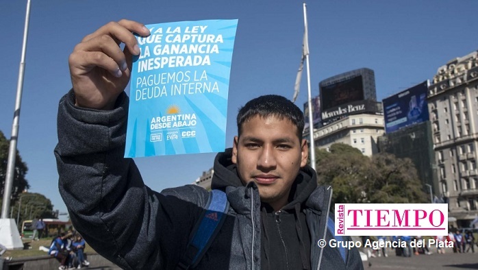 “¿Por qué es tan importante aprobar la Ley que captura ganancias inesperadas?. La guerra en Ucrania provocó que ciertas empresas, sin haber aumentado la inversión ni la productividad, se estén beneficiando extraordinariamente de tal dramática situación”, sostiene uno de los volantes que difundieron las organizaciones que se declaran a favor de los principios de “Tierra, Techo y Trabajo” que propone el papa Francisco.