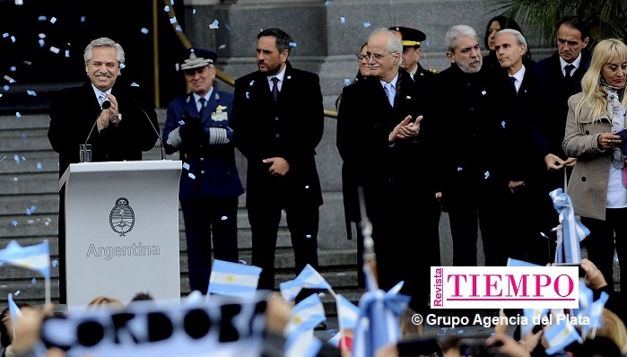 “Vamos a ponernos de pie una vez más, por ustedes, para que tengan de una vez y para siempre la patria que se merecen”, dijo Fernández al dirigirse a los alumnos que hicieron el juramento a la Bandera, y completó su mensaje: “Prepárense para un mañana mejor”.