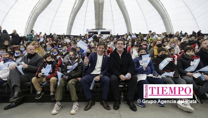 El gobernador de Buenos Aires encabezó la promesa de lealtad a la Bandera de estudiantes de cuarto grado de las escuelas primarias. Allí aseguró que “no será desde España que nos van a explicar las palabras que usamos” y convocó a los chicos a “rebelarse pensando en los otros”.