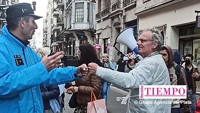 Llama la atención el “fraternal” saludo de un policía porteño al manifestante que lideraba al grupo minúsculo mientras otro arrojaba basura pic.twitter.com/LCqOG4kjAy