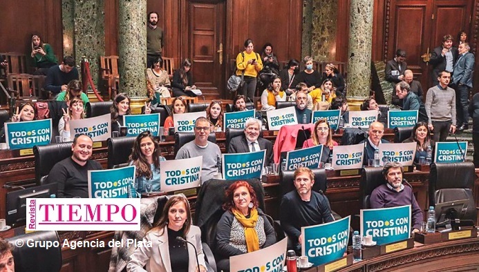 El bloque de legisladores porteños del Frente de Todos (FdT) manifestó su apoyo a la vicepresidenta Cristina Fernández de Kirchner durante la sesión en la Legislatura Porteña, a la que acudieron con carteles que decían “Todos con Cristina”.