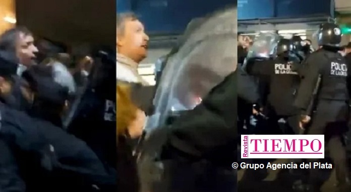 Rodeado de compañeros de militancia, el legislador fue golpeado por policías ataviados con escudos, y se escucha que uno de ellos lo reconoce y lo insulta: “¿Querés pasar, Máximo? La concha de tu madre vas a pasar” (sic).