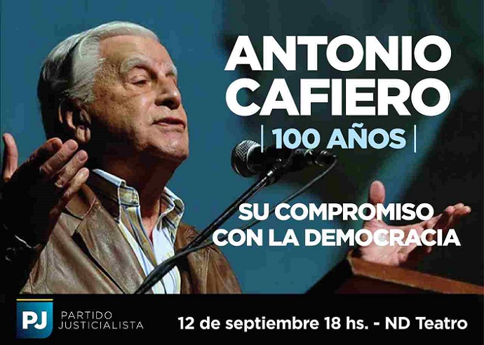 La cita será a las 18 en el ND Teatro, ubicado en Paraguay 918, y el objetivo será conmemorar los 100 años del nacimiento de Cafiero, “uno de los hombres más emblemáticos y trascendentes del movimiento nacional justicialista desde sus orígenes hasta la actualidad” que dejó “como legado su enorme compromiso con la democracia y la justicia social”, señala la invitación al evento.
