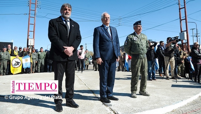 El acto contó con la presencia del ministro de Defensa, Jorge Taiana, del jefe de la Fuerza Aérea Argentina, brigadier general Xavier Julián Isaac y del intendente de San Julián, Daniel Gardonio (foto de portada).