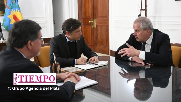 Kicillof encabezó este lunes por la tarde en la Casa de Gobierno bonaerense de La Plata una reunión con Perczyk y el director general de Cultura y Educación, Alberto Sileoni, en la que se suscribió el convenio para ampliar la jornada educativa en escuelas primarias de gestión estatal de la provincia de Buenos Aires.