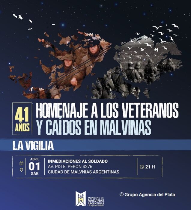 El sábado 1° de abril, desde las 21 h, se realizará la vigilia en las inmediaciones al soldado ubicado frente al Palacio Municipal (Av. Presidente Perón 4276, ciudad de Malvinas Argentinas).