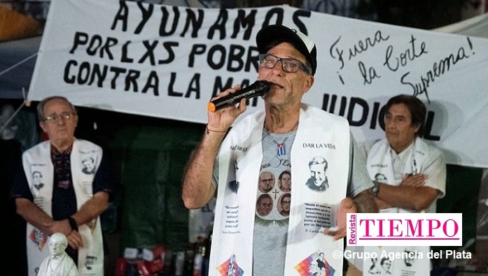 El sacerdote, integrante de los Curas en Opción por los Pobres, culminó los siete días de huelga de hambre frente a la sede de Tribunales, en reclamo a la renuncia de los miembros del máximo tribunal, bajo la consigna “Democracia sin mafia judicial”.