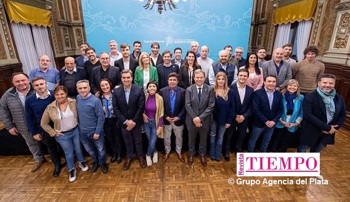 Junto al gobernador Axel Kicillof estuvieron la vicegobernadora, Verónica Magario; el jefe de Gabinete provincial, Martín Insaurralde; la ministra de Gobierno, Cristina Álvarez Rodríguez; el ministro de Desarrollo para la Comunidad, Andrés “Cuervo” Larroque; el ministro de Infreaestructura, Leo Nardini; el jefe de asesores, Carlos Bianco; y el presidente del Grupo Provincia, Gustavo Menéndez.