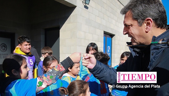 “Defendamos la Argentina del trabajo para poder pelear por una mejor puja distributiva”, pidió Massa frente a los vecinos de la localidad de Presidente Derqui, en el acto de inauguración del Club Municipal Presidente Derqui “Lionel Messi”, en Pilar, junto al ministro de Transporte bonaerense, Jorge D’Onofrio, y el intendente local, Federico Achával.