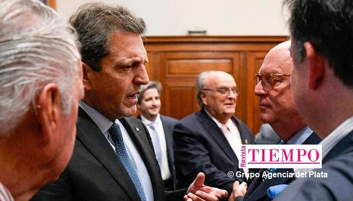 Sergio Massa estuvo acompañado por el secretario de Industria y Desarrollo Productivo, José Ignacio de Mendiguren; el vicepresidente segundo del Banco Central, Lisandro Cleri; y el jefe de asesores del Ministerio de Economía, Leonardo Madcur, entre otros funcionarios.