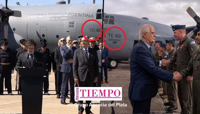 Incluso en el acto de ayer, se puedo ver cómo que la matrícula (TC-60) del avión Hércules C-130H es exactamente la misma que la que figura en el acto que Jorge Taiana protagonizó el martes 6 de junio de 2023. Así lo reveló el exministro de Defensa Jorge Taiana en su cuenta de X, donde además mostró las fotos de cuando la aeronave fue presentada en Palomar.