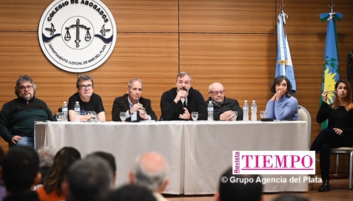Los secretarios generales Daniel Yofra (Federación Aceitera), Sergio Palazzo (La Bancaria), Rodolfo Aguiar (ATE), Roberto Pianelli (Subte), Domingo Moreyra (Ceramistas) y la secretaria general de Utedyc-Mar del Plata, Yanina Jatum, coincidieron hoy en la necesidad de enfrentar las políticas del gobierno nacional de ajuste, destrucción de derechos laborales y demolición de salarios. Fue en durante de las “Jornadas Internacionales a 50 años de la Ley de Contrato de Trabajo”, que se desarrollaron en el Colegio de Abogados de Mar del Plata.