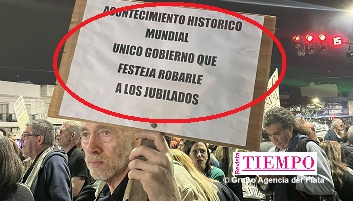 Los jubilados y otras personas convocadas se manifiestan frente a la puerta principal de la Quinta de Olivos haciendo ruido con cacerolas. Entre los carteles que portan los manifestantes se pueden leer diversas frases en contra de los legisladores y del mandatario nacional. “Robar a los Jubilados es un crimen social”, dice una de las banderas más grandes, mientras que entre los carteles más pequeños abundan leyendas como “Diputados vendidos y traidores”.