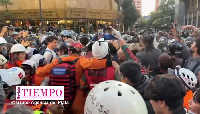 Momentos de extrema tensión se desataron cuando las fuerzas de seguridad avanzaron sobre la zona donde estaba el fotógrafo aún tirado en el piso por los mismos efectivos de la Policía Motorizada que lo habían atropellado.
