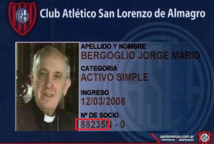 A los 88 años, nuestro amado Papa Francisco falleció a las 7:35 hora de Roma, es decir, a las 2:35 de la madrugada en Argentina. El dato no tardó en viralizarse al advertir una llamativa coincidencia que comenzó a circular en redes sociales: su número de socio en el club San Lorenzo es 88235.​