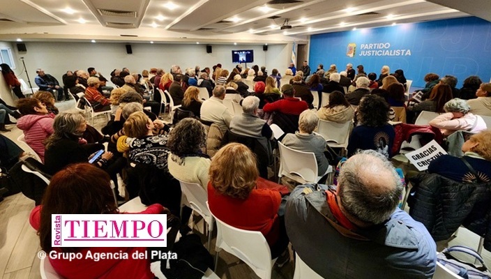 También utilizó el mensaje para agradecerle a la dirigente Fernanda Raverta, secretaria de Adultos Mayores del PJ, por si trabajo al frente de esa secretaría. La reunión se llevó a cabo en la sede del PJ de la calle Matheu en el marco de la campaña “Argentina Con Cristina”.