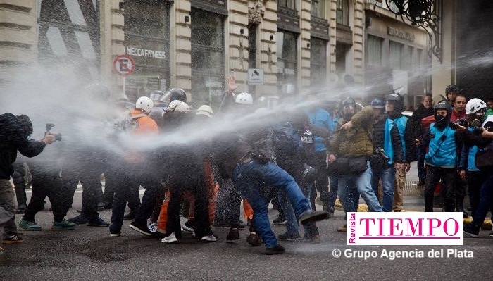 El fotógrafo Rodrigo Abd resultó herido. “El chorro justo me pega en la oreja y me tiró al piso”, dijo a los móviles de televisión que cubrían la protesta. “No escucho bien, porque el chorro es como un golpazo”, agregó.