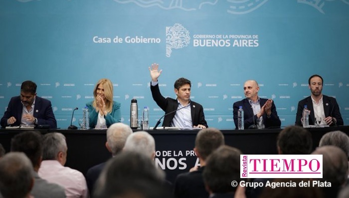 Fue en el Salón Dorado, junto a la vicegobernadora Verónica Magario; los ministros de Economía, Pablo López; de Gobierno, Carlos Bianco; y el presidente de la Cámara de Diputados bonaerense, Alexis Guerrera.
