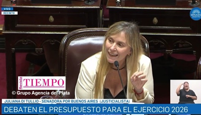 La senadora de Unión por la Patria afirmó que el presidente Milei “va a caer preso” una vez que concluya su presidencia. “El topo no solo vino a destruir el Estado desde adentro sino que vino a destruir el Estado Nación y eso es lo que está plasmado en el articulado de este presupuesto”, lanzó Juliana Di Tullio que subrayó “El superávit tiene que estar supeditado a mejorarle la calidad de vida a los argentinos y argentinas”.