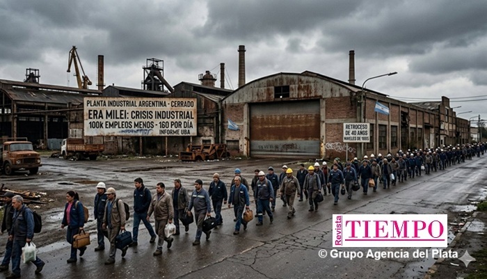 Alarmante crisis industrial en la era Milei | Informe de la UBA revela la pérdida de 160 empleos por día; capacidad ociosa superior a 40% y PIB industrial en niveles de 1985. La participación de la industria en la economía es la más baja desde la Segunda Guerra Mundial.